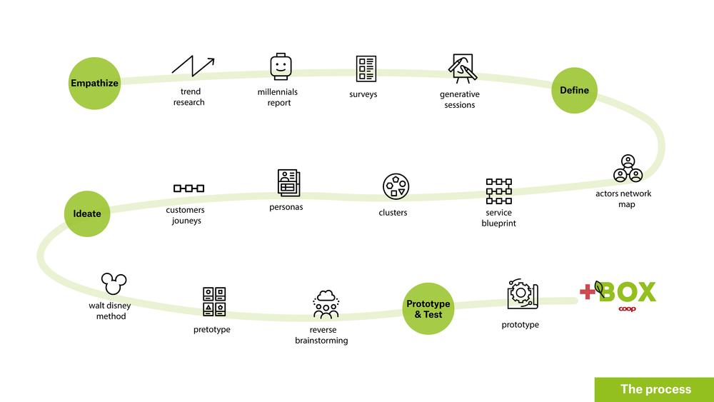 Yearly as much as ⅓ of food is thrown away globally, but not only throwing away this food is a problem also the production is a large environmental issue. It takes the landmass to grow all the food that will eventually end up in the trash. The landmass that had to be deforested and soil that had to be degraded in order to grow products we end up never using. Together with Coop Denmark, we wanted to fight this food waste by creating a sustainable solution focused on millennials living in Copenhagen. Throughout the human-centered design process, we created the +BOX, a small initiative that also could be implemented on a larger scale. The +BOX is a consumer subscription on the product surplus of Coop. This means that consumers can order a box online, which will be delivered at home containing products that would otherwise be thrown away by Coop.