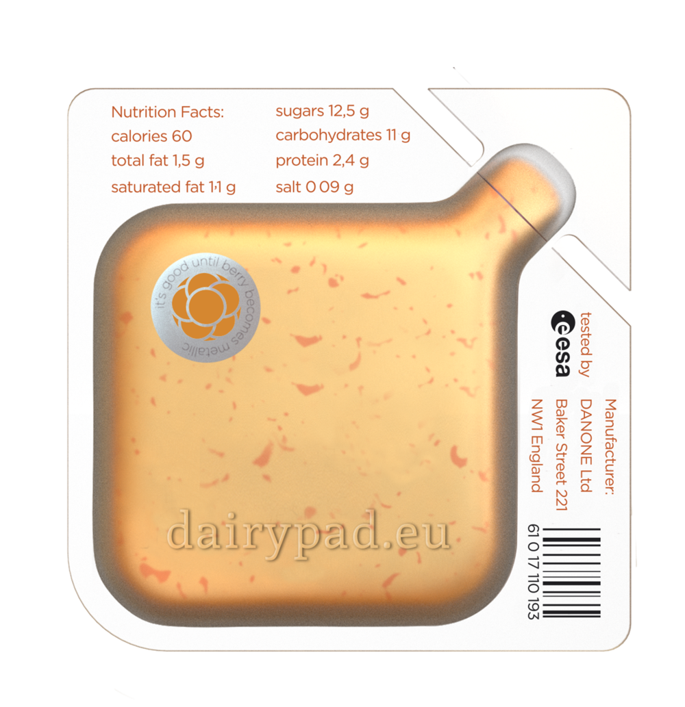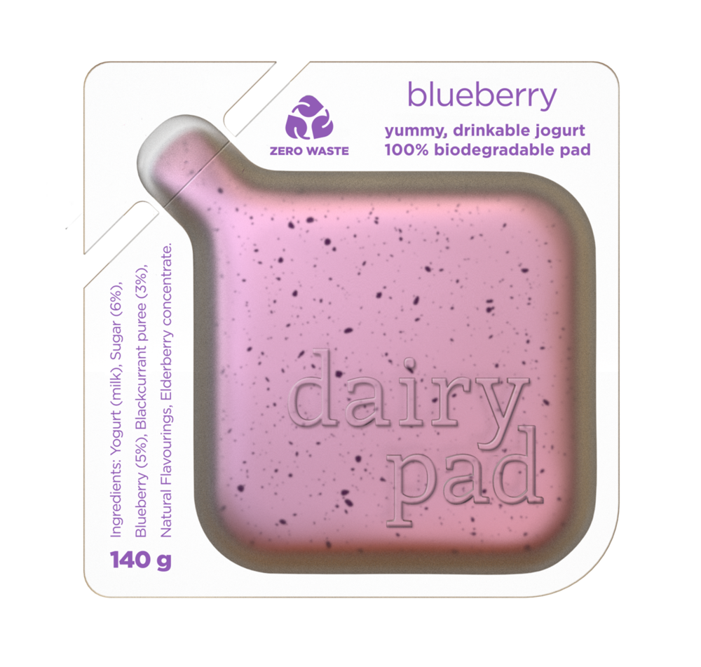 The packaging “Dairy Pad” contains a single portion of drinking yogurt intended for people who value the freshness of the product, ease of consumption, ecological sensitivity. The material is similar to that from which gelatine capsules are made. After consultations with the Chemistry Department at the Warsaw University, a slight change in composition allows producing gelatine packs dedicated to yogurt.