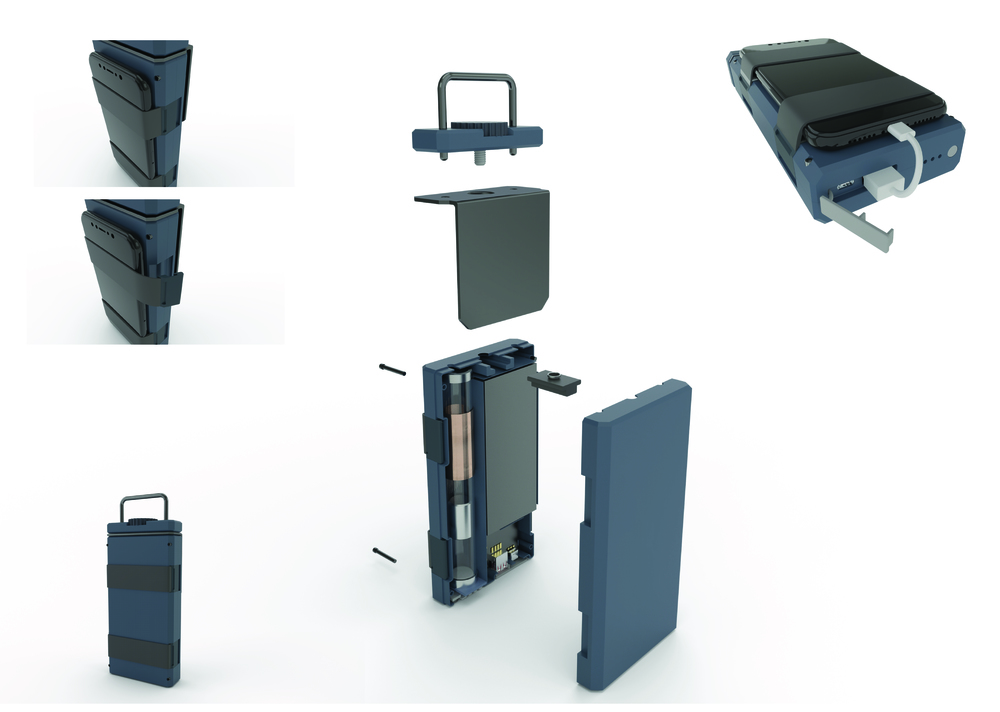 Powerbanks use faraday’s law to charge the battery without additional forced use by humans. It works when you walk by a magnet moving up and down, while a second magnet which is damper pushes the magnet to the top. I designed two versions of this device. The first is an outside version for people who want a long trip (longer than 10 or 30 minutes). The device case is made in polycarbonate which is very strong plastic. The second version is for people on their way to work, who need to save the batteries in their smartphones recharge in fast moments. The second device case is made in aluminum; it has a more simple, elegant and pretty design than the first powerbank. The only disadvantage is that you should hold the device in a vertical position in order for faraday’s mechanism to work well (it should work in horizontal position too). I decided to put an element which corrects having both of the devices in a horizontal position — for example, hooking them onto a pocket in a backpack.