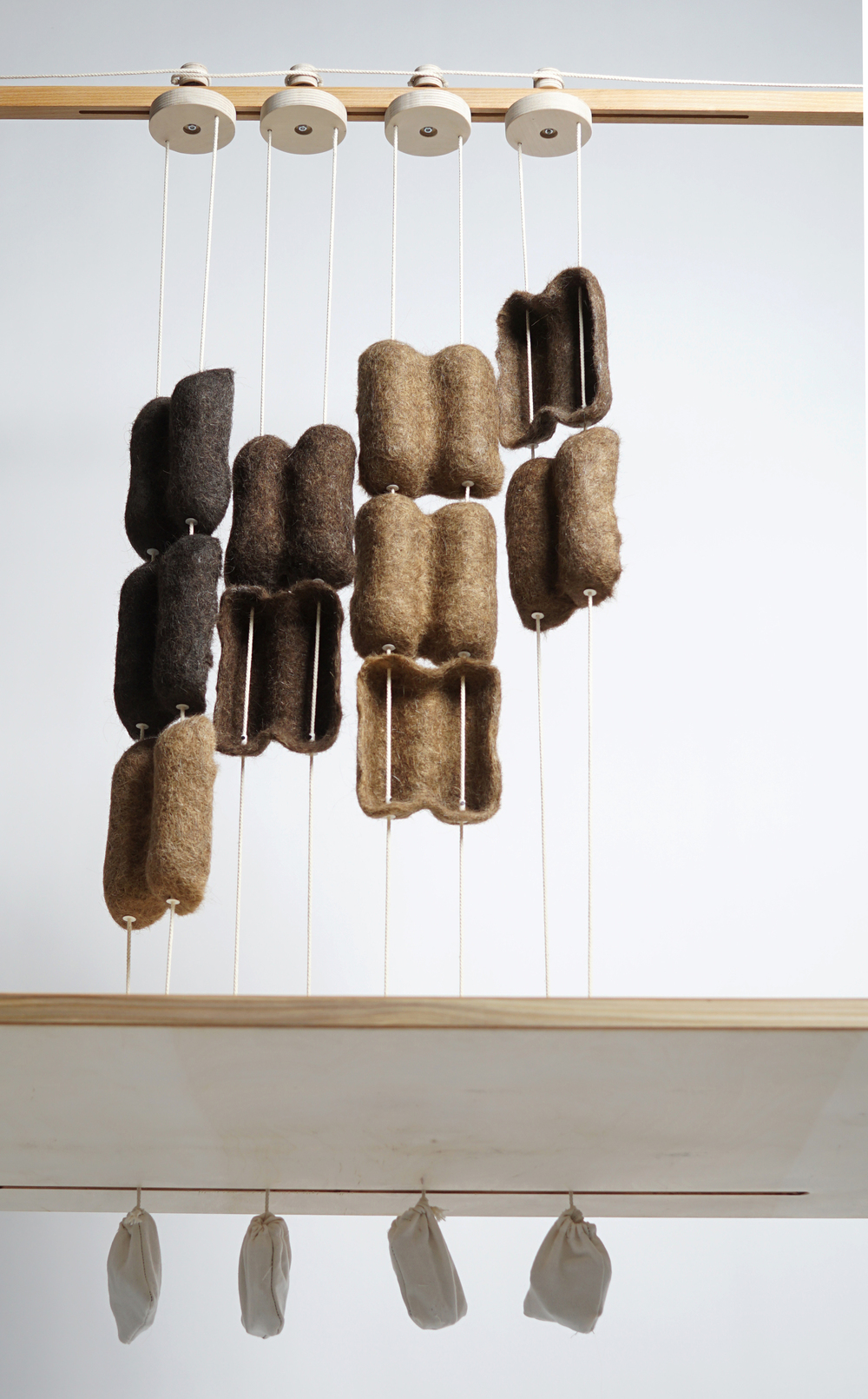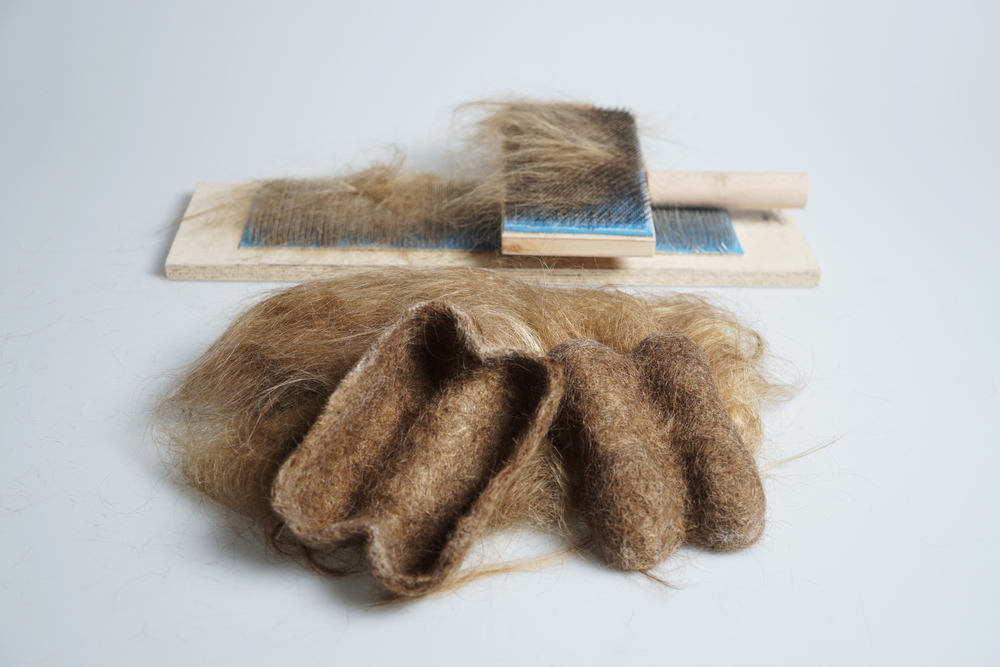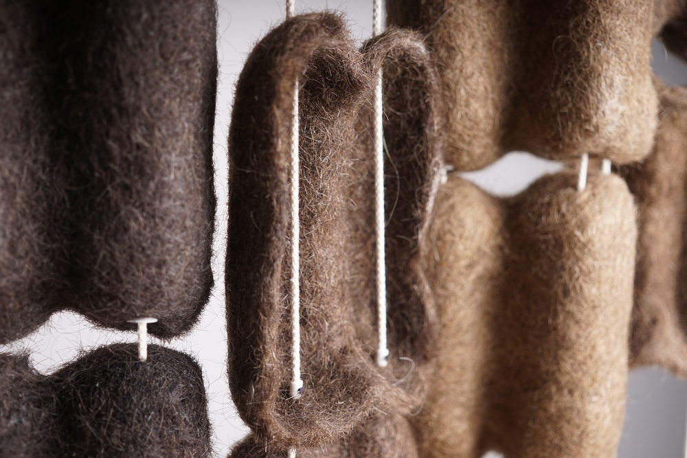 Inspired by the concepts of ‚Biomimicry’ and ‚Cradle to Cradle‘ this project focuses on the material human hair and how we can use its valuable properties to support circular and climate conscious ways of producing and using our products. Consisting of keratin, hair is known to filter oil, particulate matter, chemicals, store heat and absorb sound. It can therefore be a perfect fit to design products that solve a variety of existing problems such as particulate matter, or noise insulation. While animal wool is well known as a resource, human hair is generally considered as waste once cut off. Also, it is discarded or burnt, thus releasing toxic gases into the atmosphere, which shouts for a C2C concept, where human hair is social collected at hairdressers. We can fight climate change with the creative re-use of this valuable resource, which is available in every part of the world, while considering the difficulties and concerns coming up with human hair as a resource.