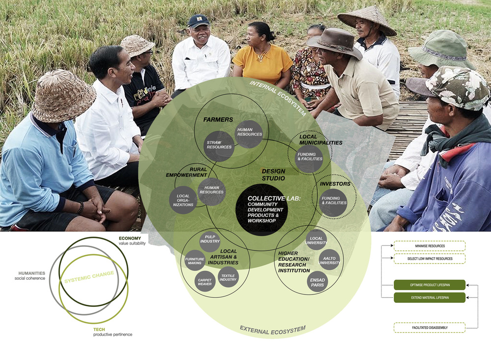 The Collective Lab (Design Think Tank), Local Community (Farmers & residence), Craftman & Artisan within 5-10km from the location (SMEs), Research institute (Aalto University, Ensad Paris, Local University), and Local Government (BEKRAF Indonesia, Cirad Institute France)