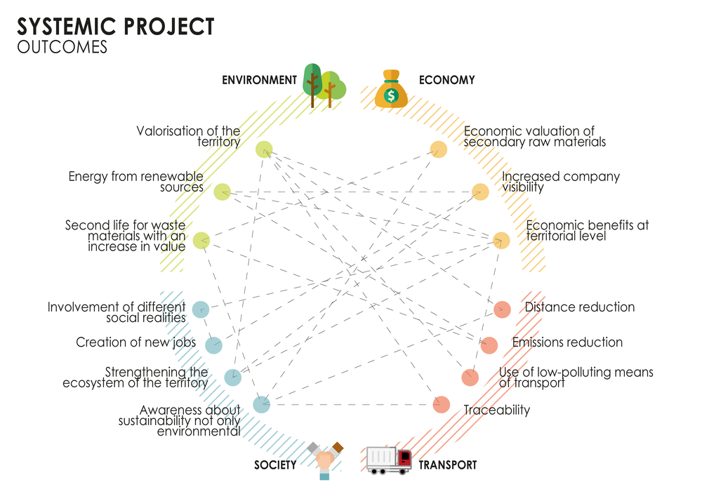 A new way to rethink and reuse the waste obtained from transformation processes of an industrial reality, converting it into a primary resource for the activities of other companies. All this exploiting the potentialities of the outputs, creating at the same time circular economy that acts at local level on the territory.
