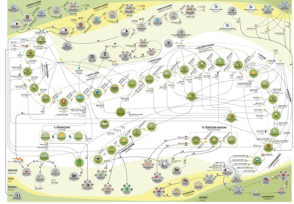 Our project focuses on the opportunities given by the “use” of local suppliers, big bags recovery, introduction of solar panels, a new local joint venture for biogas supply among the local realities, steam recovery in the internal process, muds depuration plant and new production lines (breadsticks and animal feed).