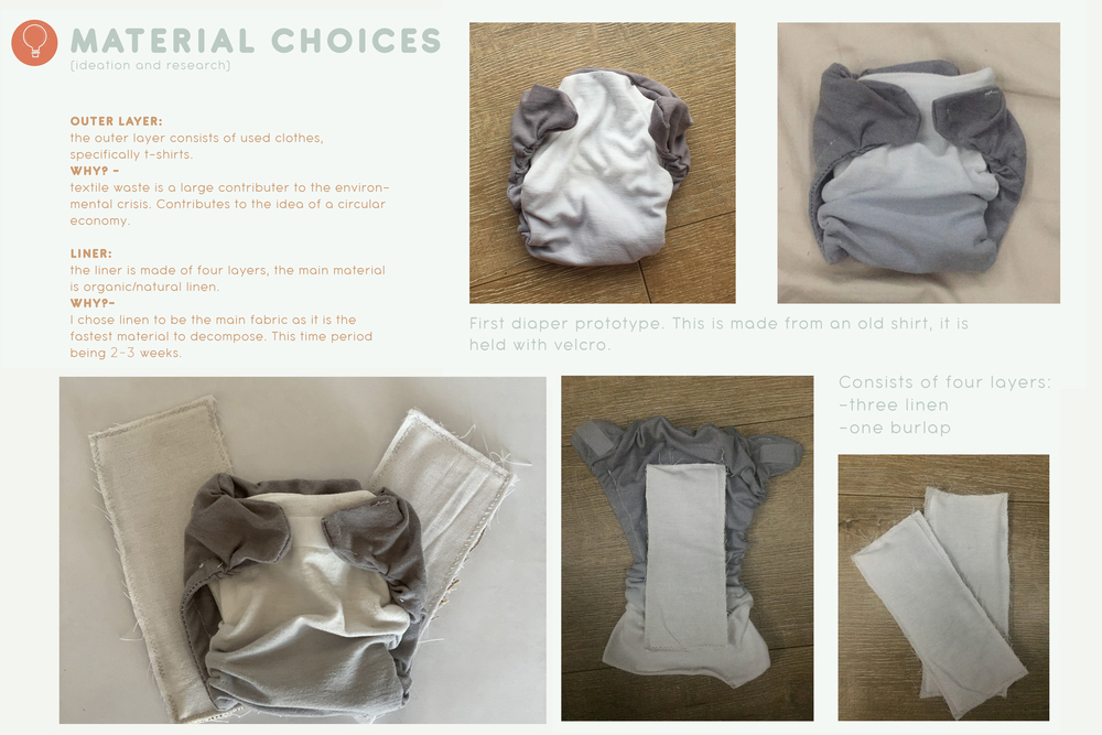 Research Process: An anonymous survey was conducted to gather data from young and prospective mothers on their opinion of disposable and reusable diapers. This data, and data collected from desktop and academic research, was used to consider the design challenges of reusable diapers and design a solution for a sustainable reusable diaper. The diaper design is substantiated with packaging, branding and marketing materials, all of which was produced as part of a final honours research-led practice project.