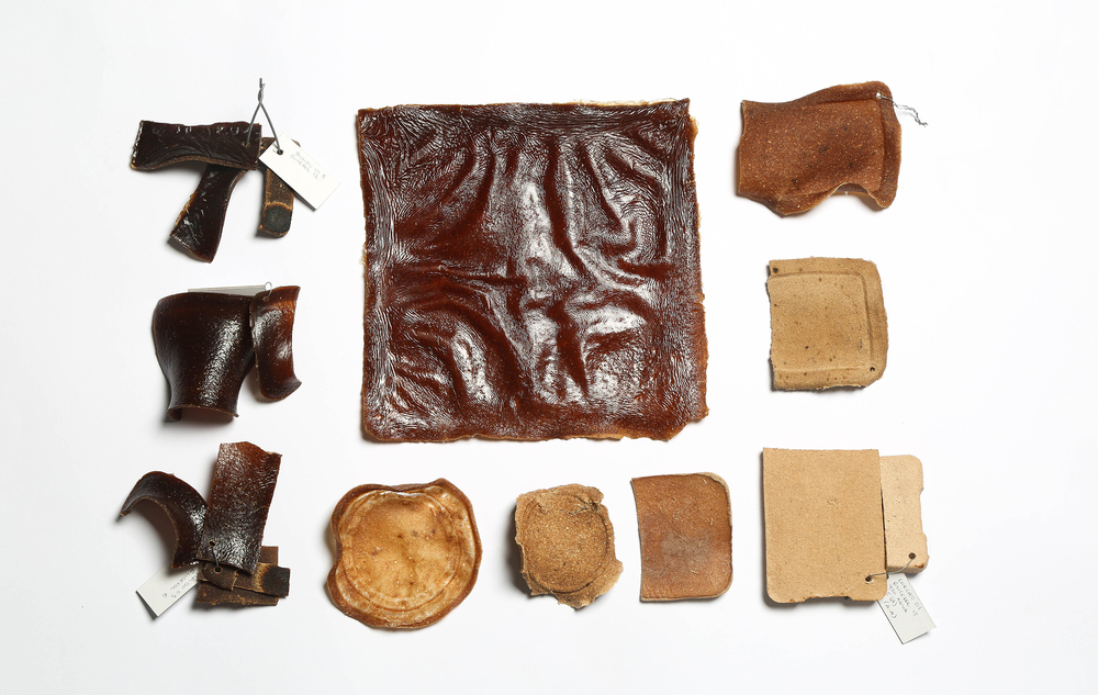 Therefore, this investigation tackles the integration of wood residues and natural biopolymeric agglomerans, in order to produce a new material textile capacities and a low environmental impact. After running several tests, we have produced a new material based on agar agar, gelatine, glycerine, water, and sawdust. The Wood Leather is characterized by its high fireproof and waterproof capacity, its flexibility, its capacity to be shaped during production, and its degradation. As a laminated element, it can be transformed by laser cutting assisted by computer, apart from the possibility of being punched and sewed with conventional tools.